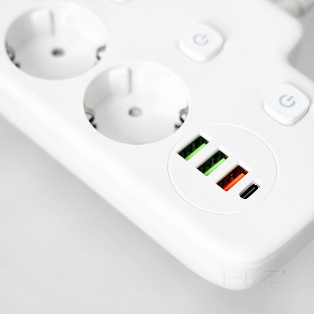 Extension cord KOBI LINEA PRO FL 2 sockets+3USB/1USB-C/0,2m white Kobi